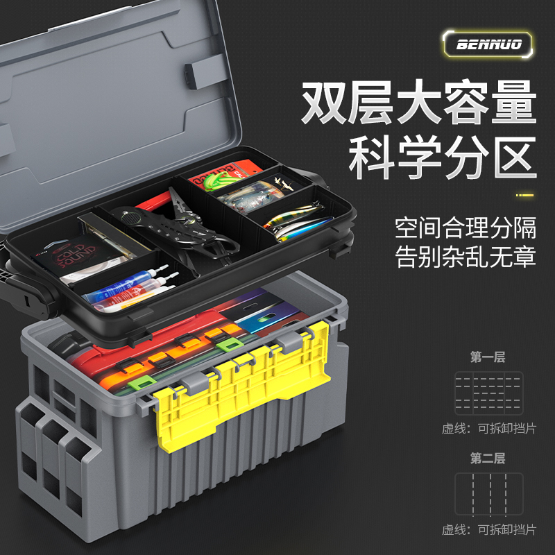 天猫本诺多功能路亚箱插竿可坐钓鱼箱加厚超轻海钓矶钓箱大容量收纳箱