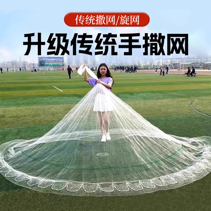 天猫老式传统撒网手抛网尼龙线铅坠子轮胎线鱼线手撒网渔网旋网捕鱼网