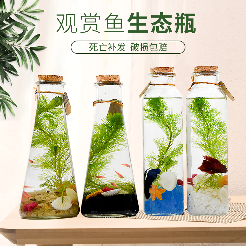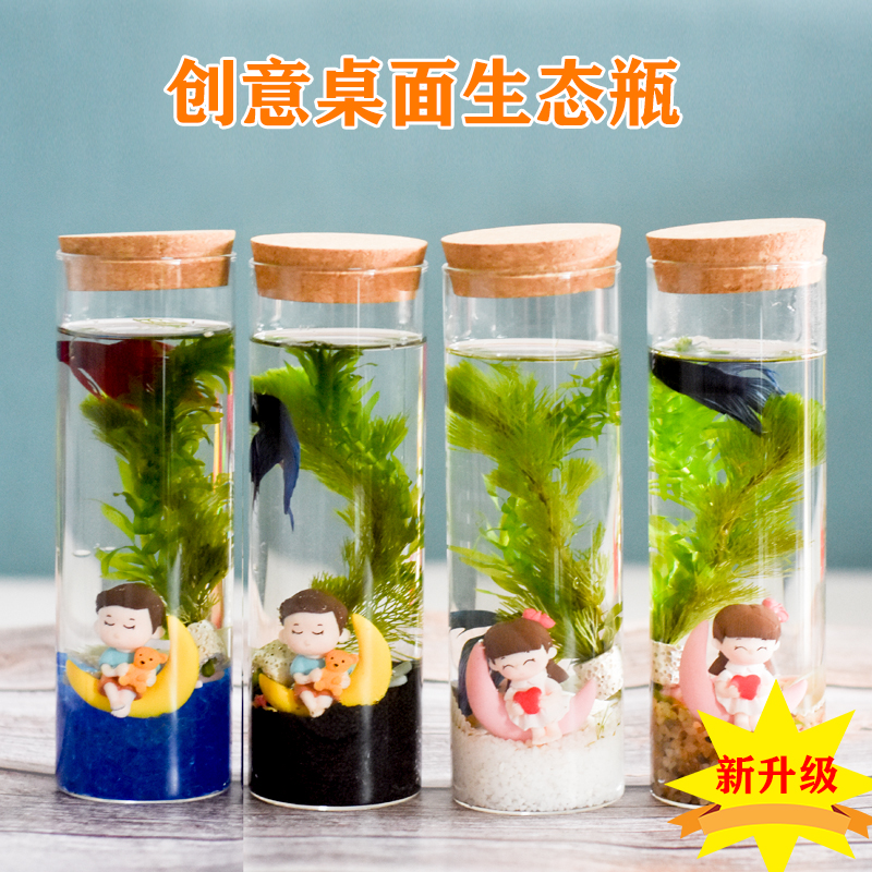 淘宝观赏鱼生态瓶鱼微景观免换水斗鱼活体diy桌面小型鱼缸斗鱼水族箱