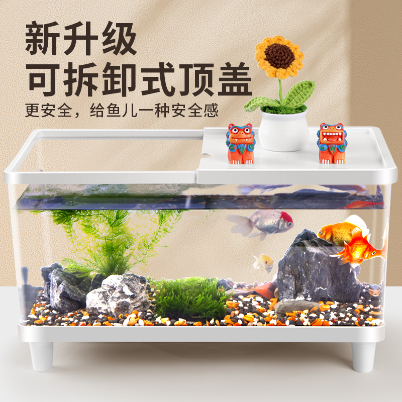 天猫高清透明塑料鱼缸客厅金鱼缸长方形一体成型防爆生态观赏鱼水族缸