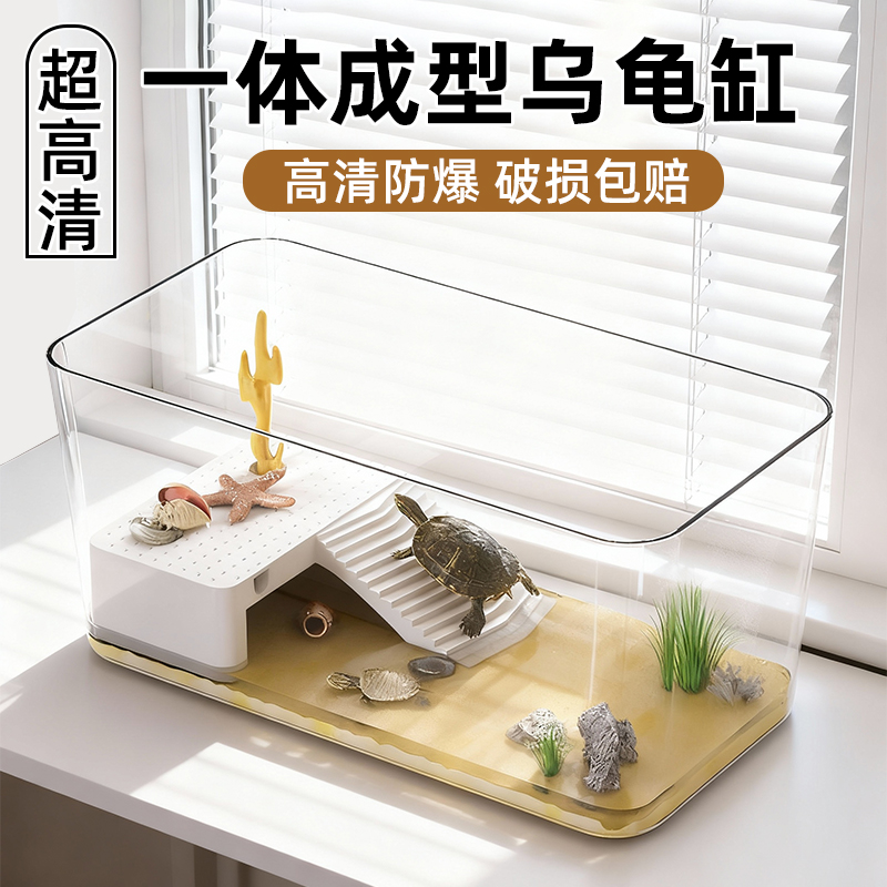 天猫加厚鱼缸小型一体成型客厅桌面金鱼缸方形透明观赏缸乌龟缸一体式
