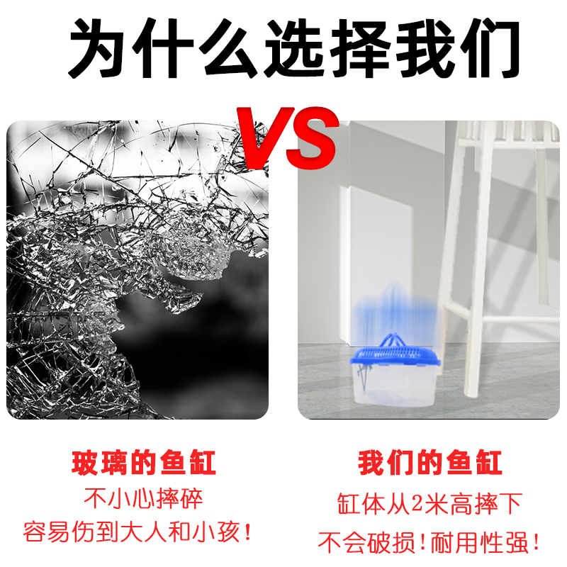 天猫塑料鱼缸小型鱼盒小金鱼缸手提防摔观赏儿童家用客厅装鱼的盒子养