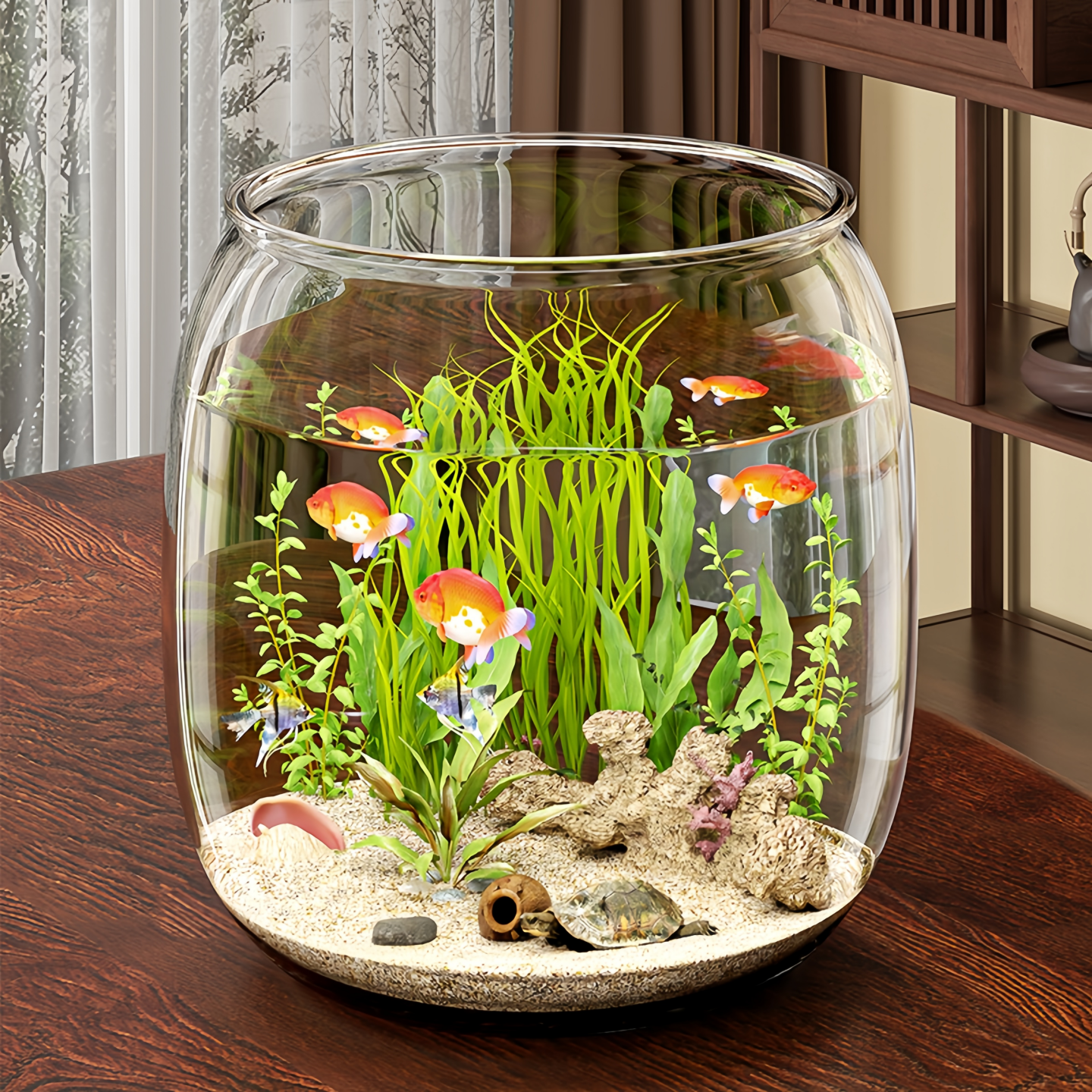 淘宝鱼缸生态缸客厅小型2025新款桌面观赏塑料圆形一体成型仿玻璃防摔