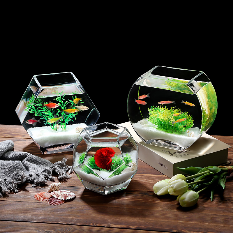 天泰国斗鱼缸简约斗鱼活鱼展示缸办公室生态微缸观赏鱼迷你桌面鱼缸