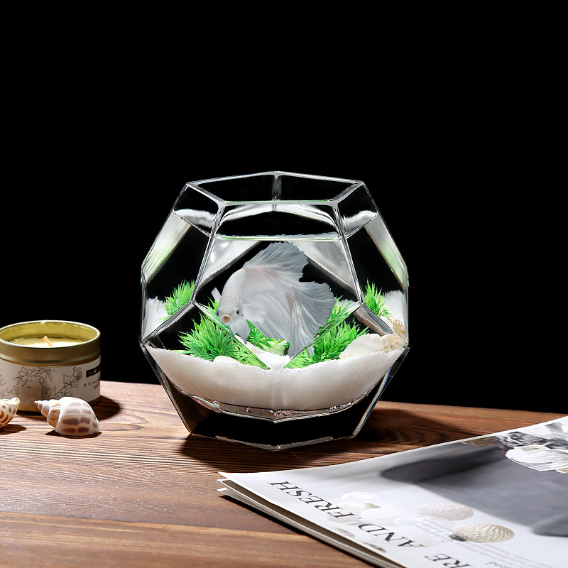 泰国斗鱼缸简约斗鱼活鱼展示缸办公室生态微缸观赏鱼迷你桌面鱼缸