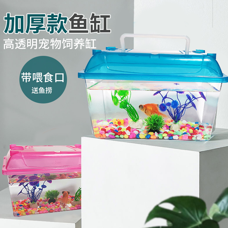 淘宝透明金鱼缸客厅家用带盖观赏鱼水族箱加厚塑料龟缸手提饲养爬宠盒