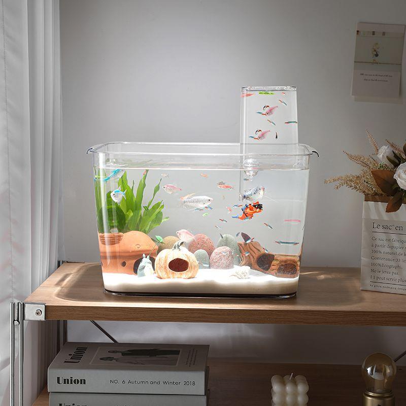 淘曼尾纱泰国斗鱼观赏鱼专用鱼缸小型玻璃客厅桌面造景摆件创意夜灯