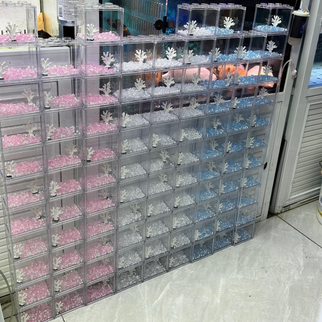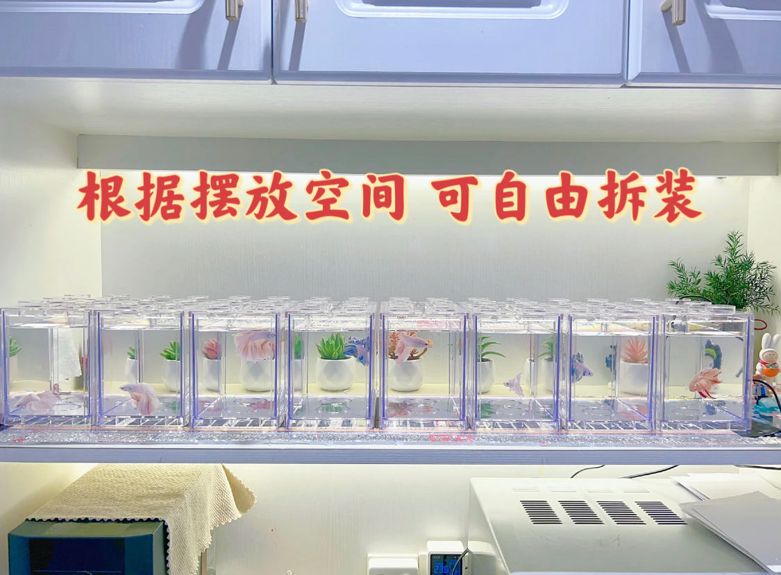 淘宝多格斗鱼专用积木鱼缸多格组合桌面生态观赏鱼缸造景三格六格九格