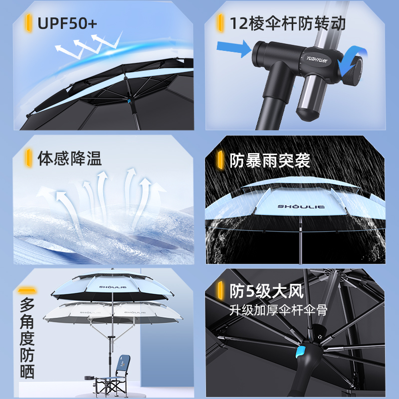 渔之源2025新款钓鱼伞钓鱼专用雨伞户外遮阳伞防晒伞钓箱专用