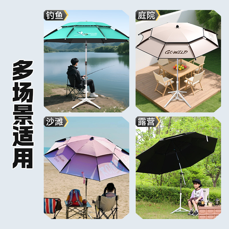 淘2025新款钓鱼伞户外露营钓鱼遮阳伞加厚黑胶防晒防暴雨万向大钓伞