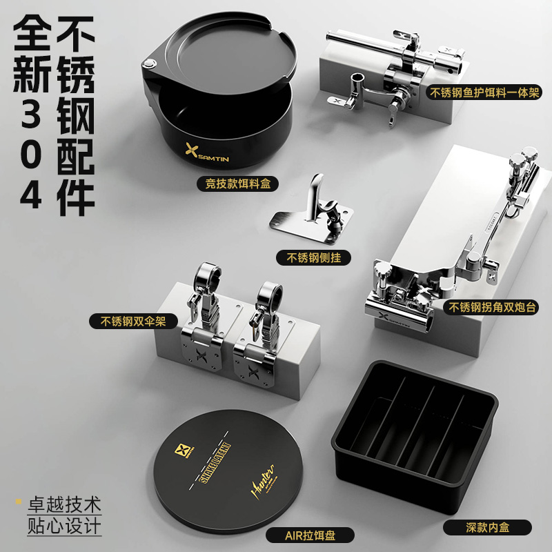 天天青钓箱不锈钢常规炮台五件套无极调节高坐姿超轻26升钓鱼箱