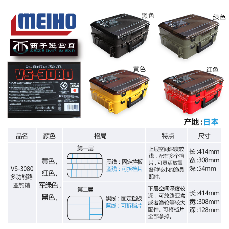 淘宝日本进口MEIHO明邦VS-3080路亚箱假饵盒船钓双层工具箱钓鱼工具箱
