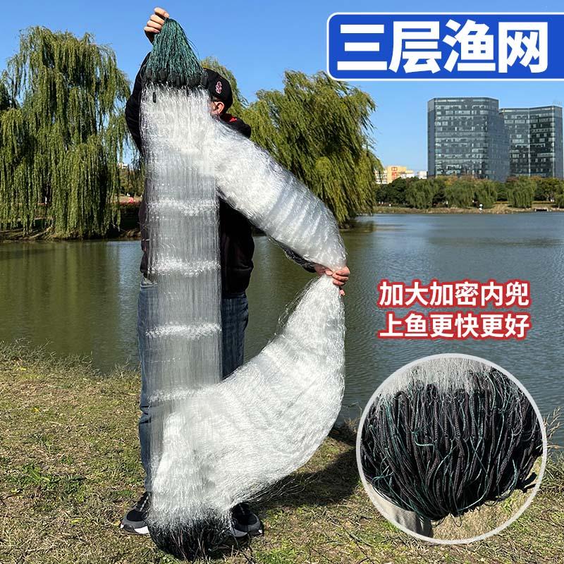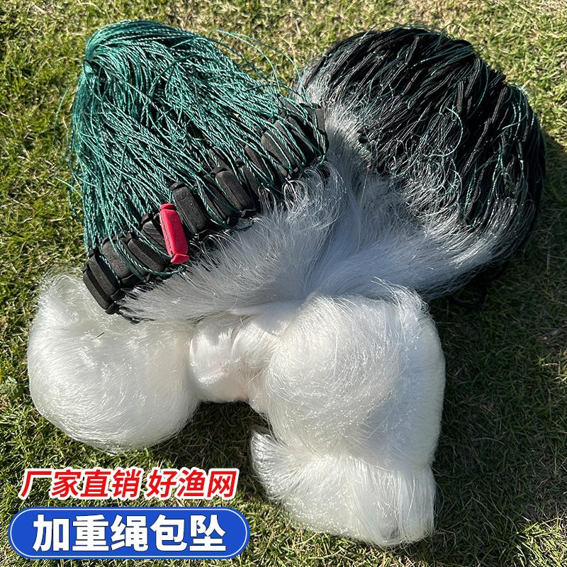 淘单层渔网三层粘网丝网捕鱼专用网圆坠铅坠细软胶丝加粗丝捕鲫鱼网