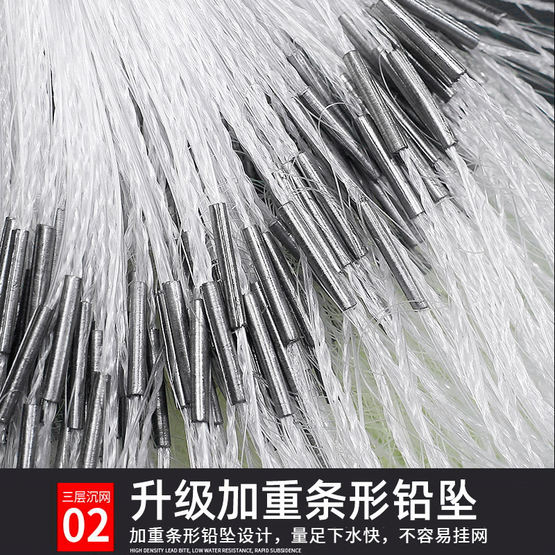 淘进口软丝网渔网三层沉网加重绳包坠白丝捕鱼网粘网沾鲫鱼挂子底网