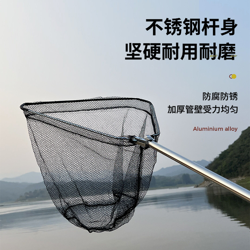 淘不锈钢抄网套装伸缩杆抄网杆捞鱼网鱼抄网折叠网兜钓鱼网垂钓