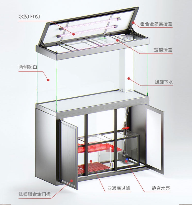 淘新款金鱼缸客厅电视柜旁落地静音超白玻璃立式方形生态底滤水族箱