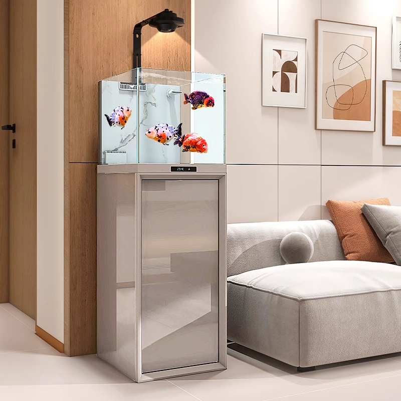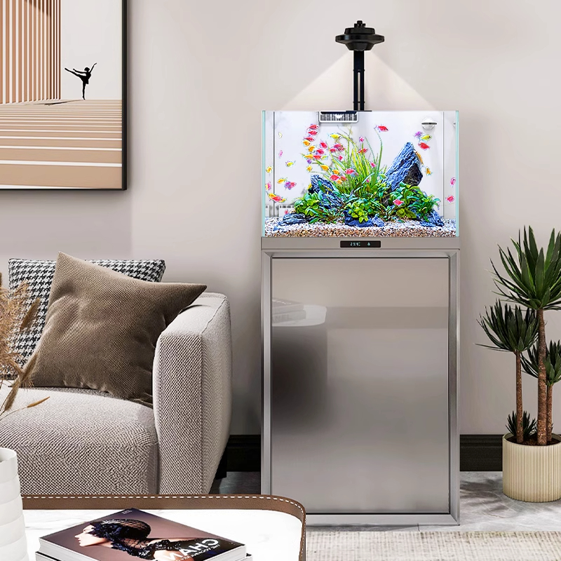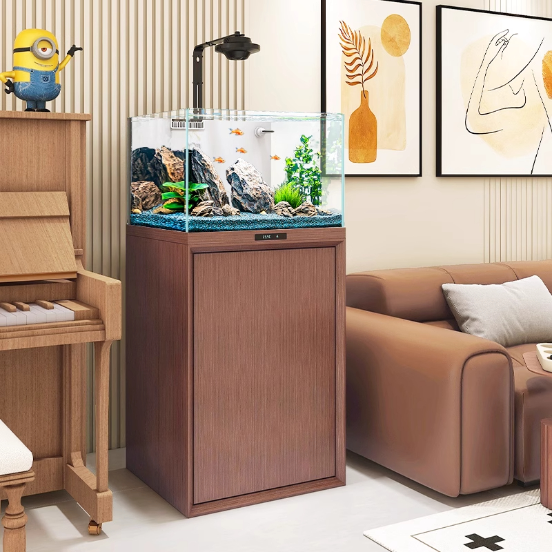 2025新款超白玻璃高端客厅鱼缸生态智能家用中型带柜子一体金鱼缸