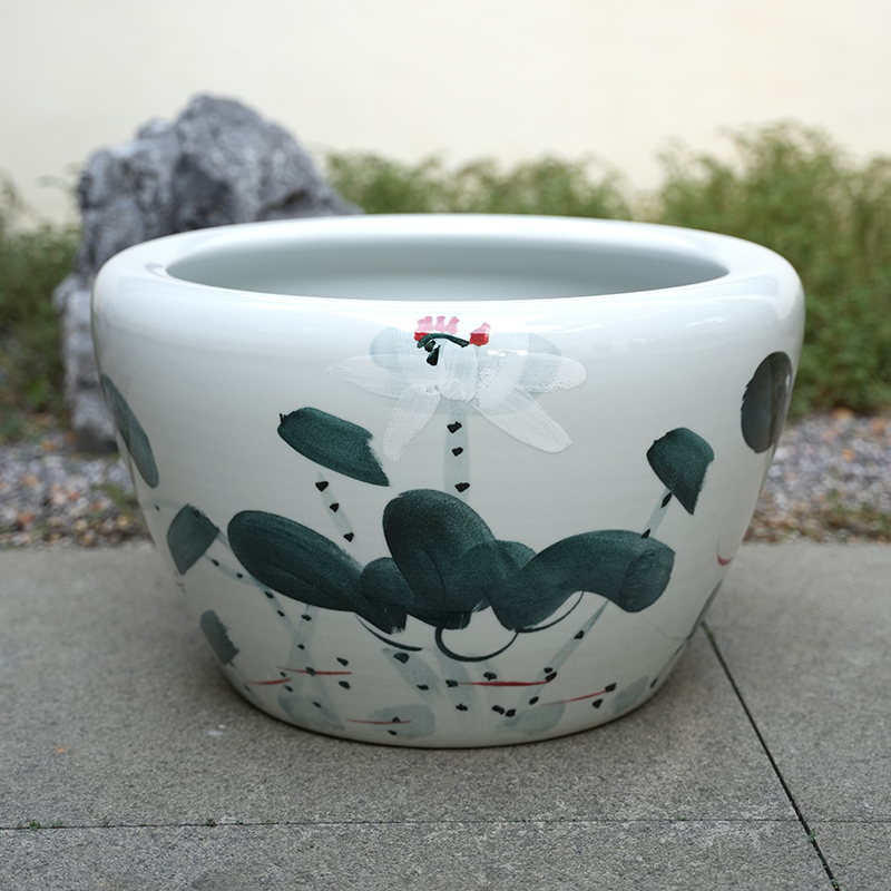天景德镇陶瓷鱼缸落地立柱式客厅大号吸水石盆乌龟缸睡莲碗莲盆庭院
