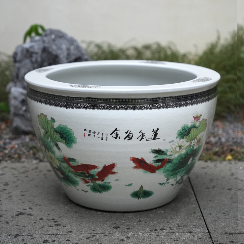 天景德镇陶瓷鱼缸青花瓷大水缸户外一米睡莲阳台老式养鱼缸庭院门海