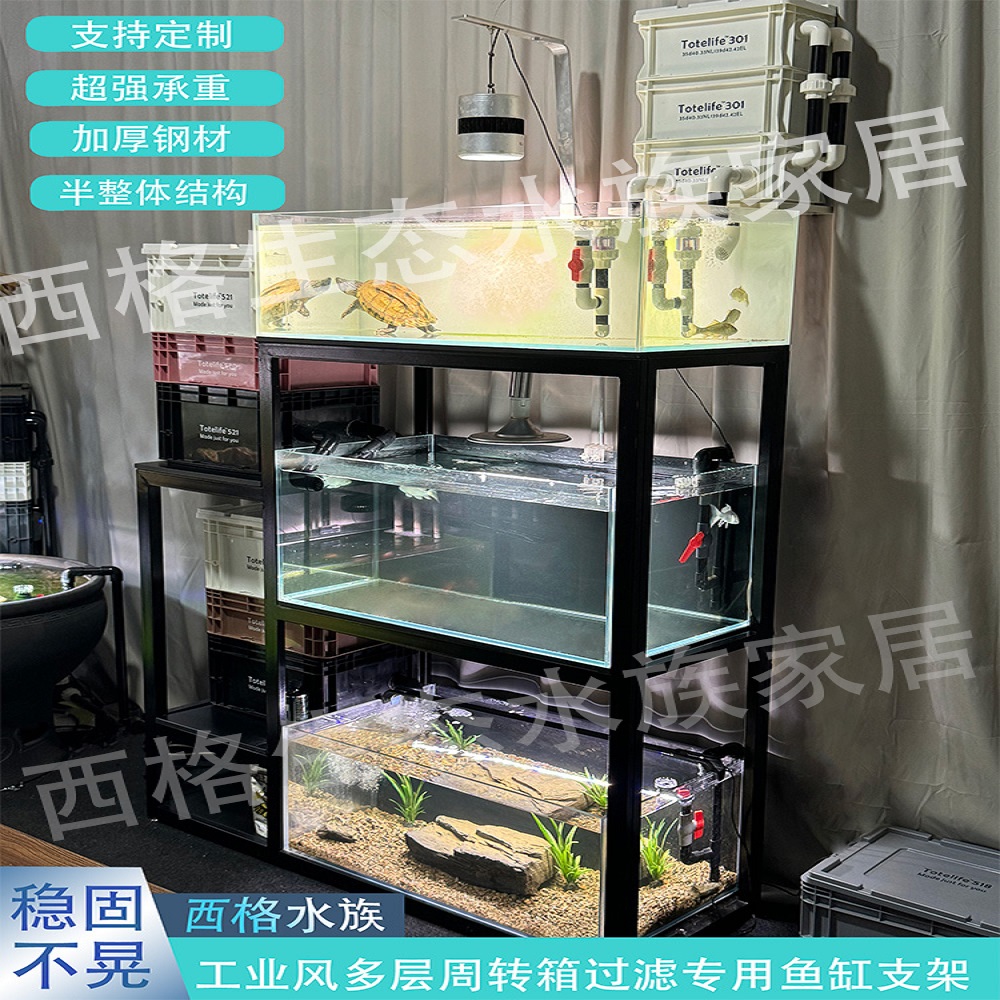 淘宝鱼缸架子底座底柜工业风简约周转箱过滤专用多层龟缸超强承重支架