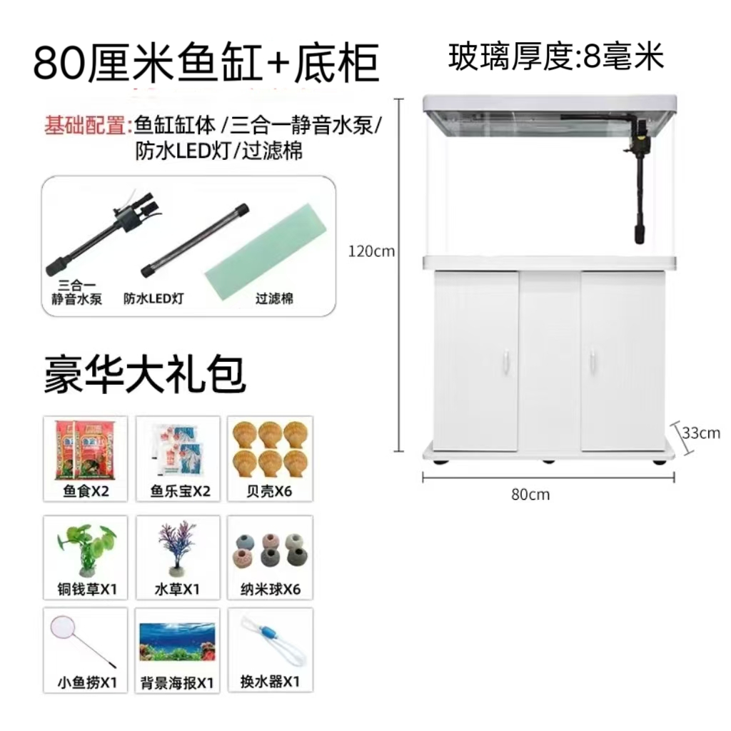 天森森新款智能简奢鱼缸 客厅超白玻璃大型底过滤免换水生态水族箱