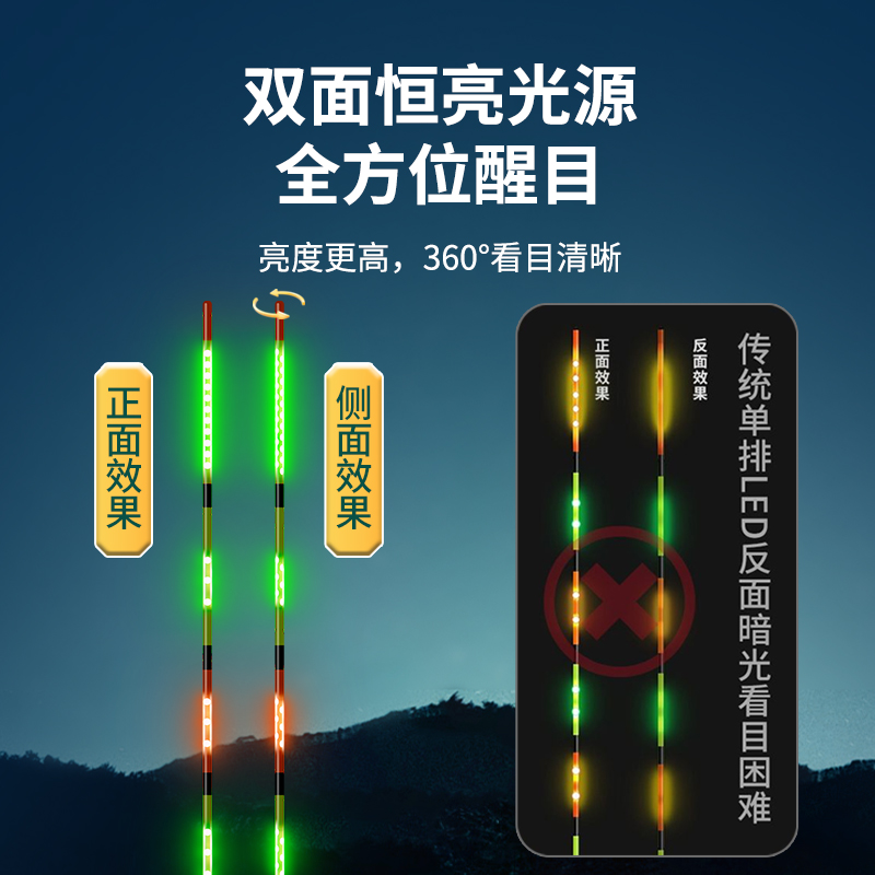 民间艺人日夜两用夜光漂咬钩变色电子鱼漂柔光醒目高灵敏夜钓浮漂