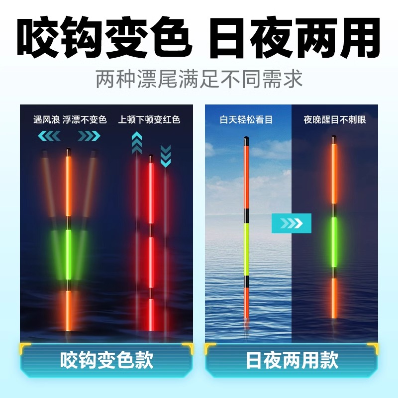 民间艺人日夜两用夜光漂咬钩变色电子鱼漂柔光醒目高灵敏夜钓浮漂