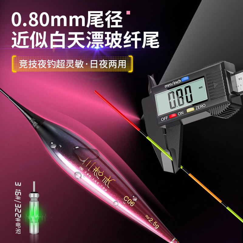 淘宝三老头高灵敏LED硬尾夜光漂316轻量日夜两用电子漂鲫鱼漂细尾浮漂