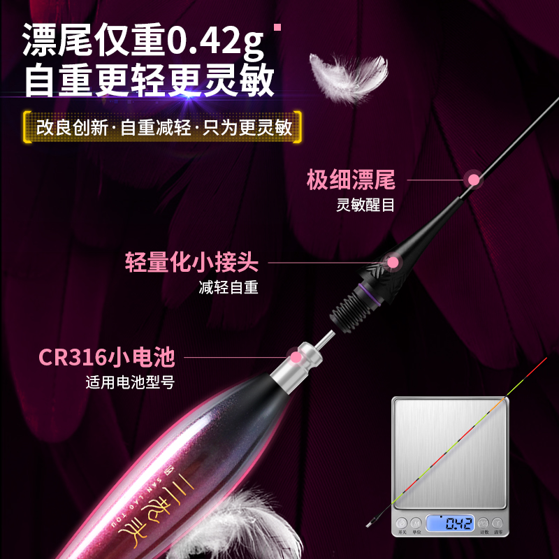 阿卢优咬钩变色夜光浮漂超细高灵敏425LED鲫鲤鱼黑坑竞技野钓鱼漂