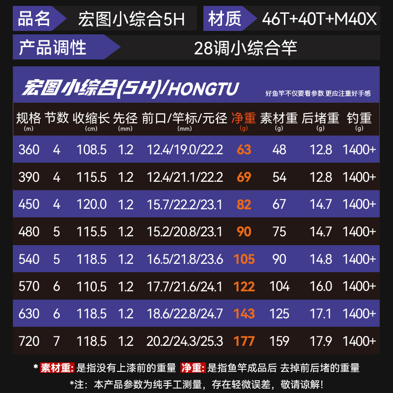 天猫双宝宏图轻量小综合竿5H鱼竿手杆超轻超硬钓鱼竿台钓杆极轻版野钓