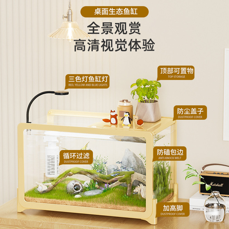 2025年全新推出的生态鱼缸过滤制氧一体净水循环系统,专为现代客厅设计,融合科技与美学。采用仿玻璃景观工艺,通透质感媲美真玻璃,轻盈耐用。集高效过滤、静音制氧与智能水循环三大功能于一体,有效分解杂质、增氧活水,保持水质清澈如新。内置LED生态照明,模拟自然光周期,助力水草生长,营造沉浸式自然生态景观。简约流线外观,适配多种家居风格,既是观赏亮点,也是健康生活伴侣。一键智能控制,低能耗运行,让养鱼更省心、更环保,开启智能生态家居新体验。