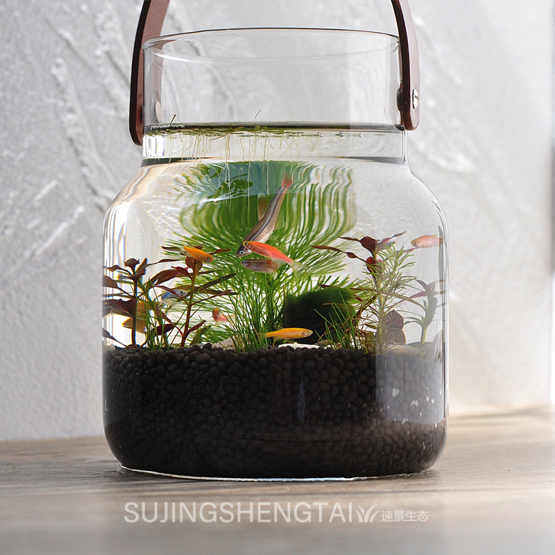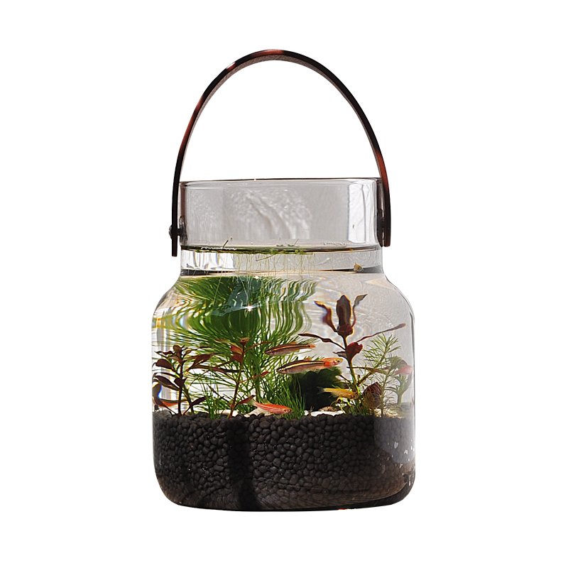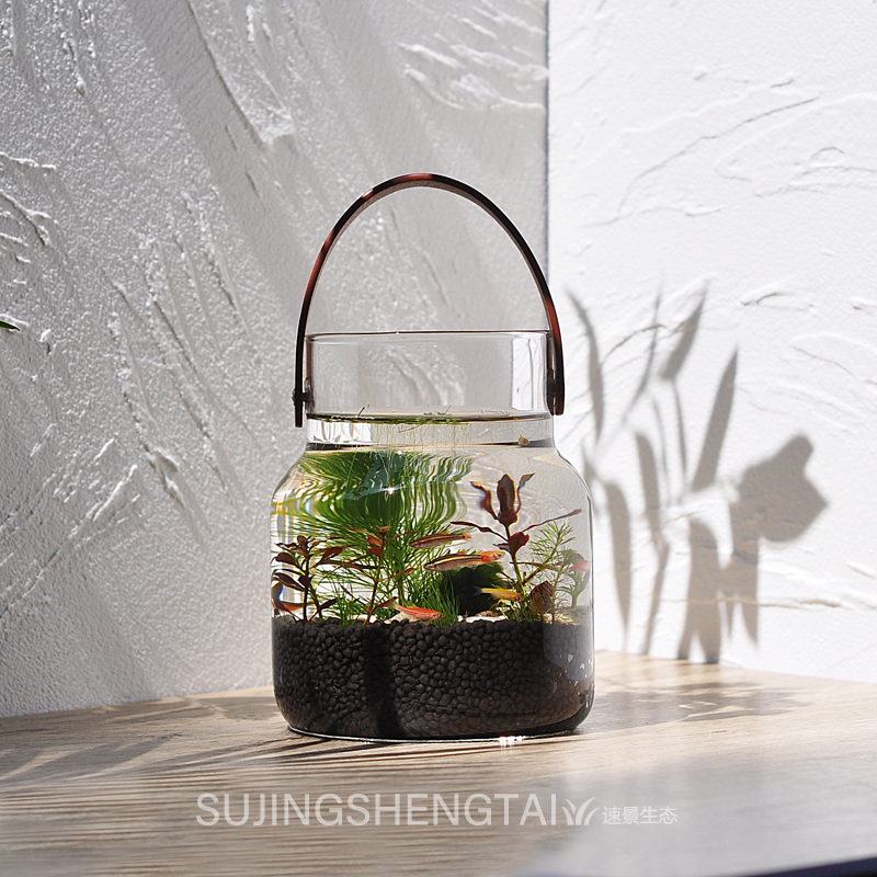 天手提生态瓶DIY桶活体学校小鱼塑料微景观淡水冷水真观赏鱼虾水草
