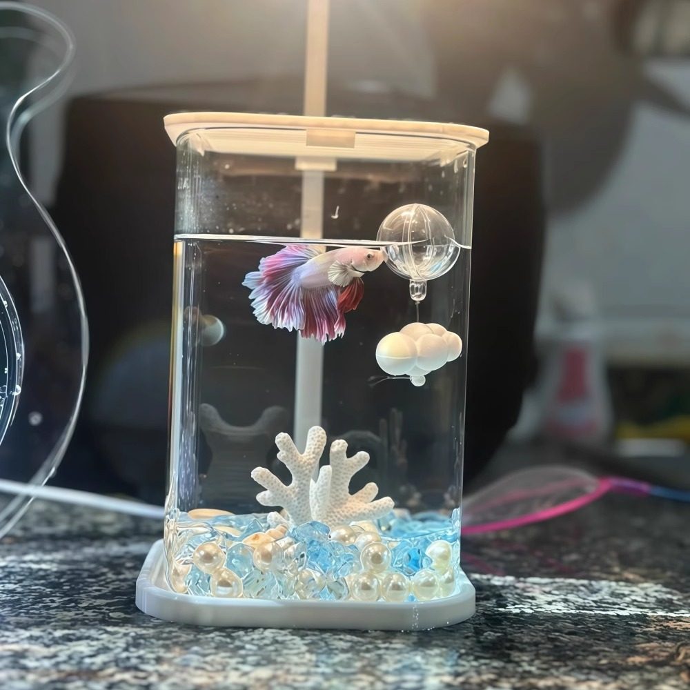 这款家用斗鱼缸专为客厅、办公桌或书桌设计,小巧精致,兼具观赏性与实用性。采用高透玻璃材质,搭配简约现代造型,轻松融入家居或办公环境。缸体容量适中,适合饲养斗鱼、金鱼等小型观赏鱼,内置过滤系统保持水质清澈,搭配LED柔和灯光,凸显水下造景美感。可搭配水草、沉木、砂石等生态造景,营造微型水族世界,不仅美化空间,还能舒缓压力、提升专注力。无需频繁换水,维护简便,是都市人群亲近自然、享受静谧时光的理想选择。无论是自用还是送礼,都是精致生活的贴心之选。