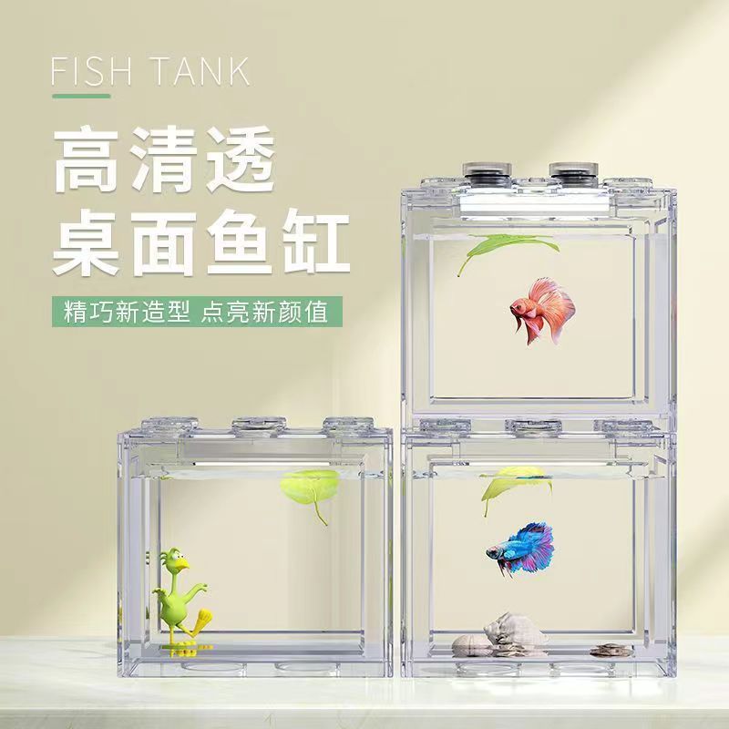 淘宝鱼缸客厅小型家用桌面亚克力积木盒观赏鱼适用带灯创意造景斗鱼缸