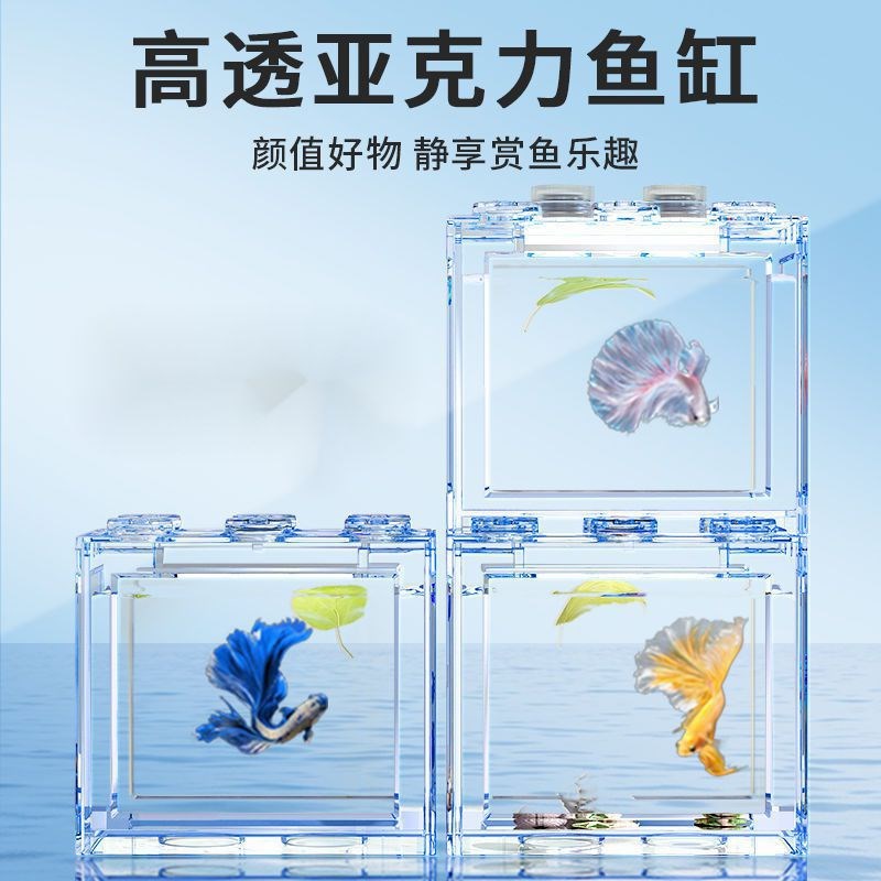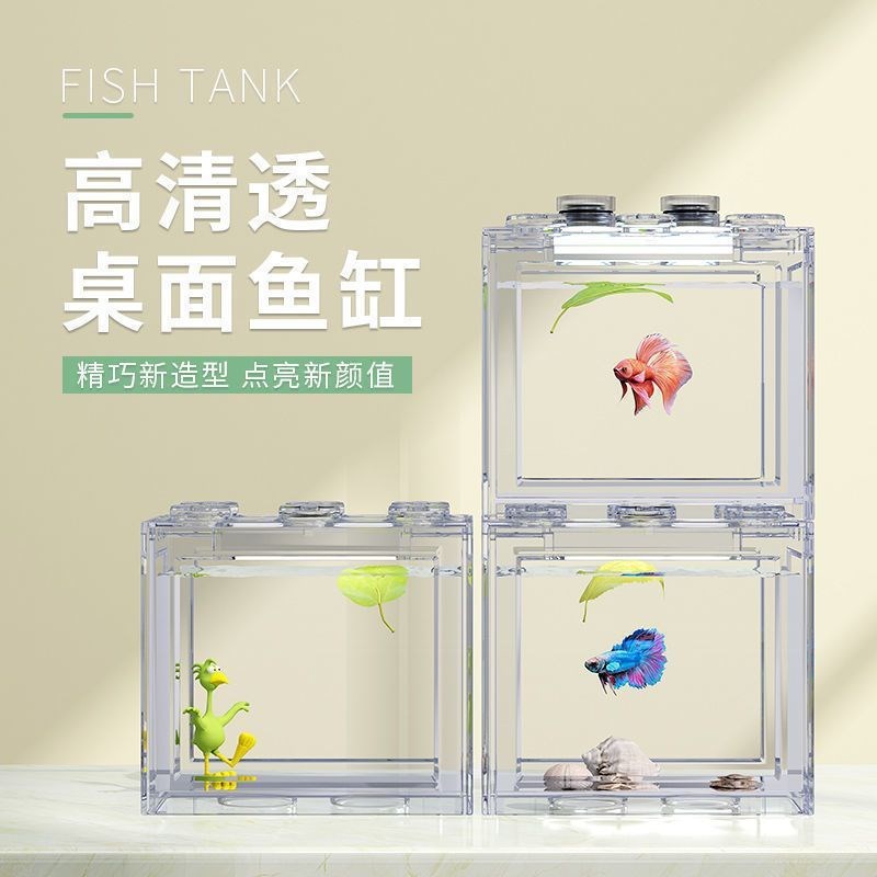 淘宝斗鱼积木缸高透亚克力小型家用客厅创意造景生态观赏高透桌面摆件