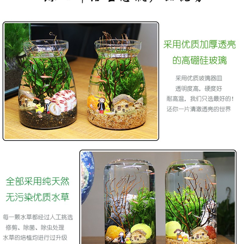 淘宝观赏生态瓶鱼微景观免换水免打理diy水族办公桌面创意造景鱼缸