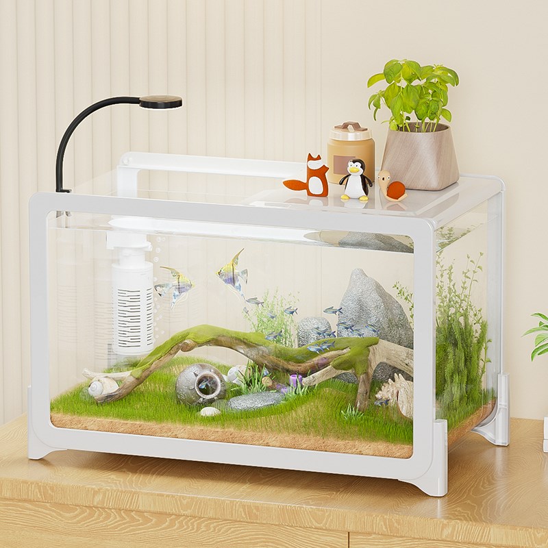 鱼缸客厅小型桌面一体式金鱼缸带盖塑料透明懒人生态造景观赏底部