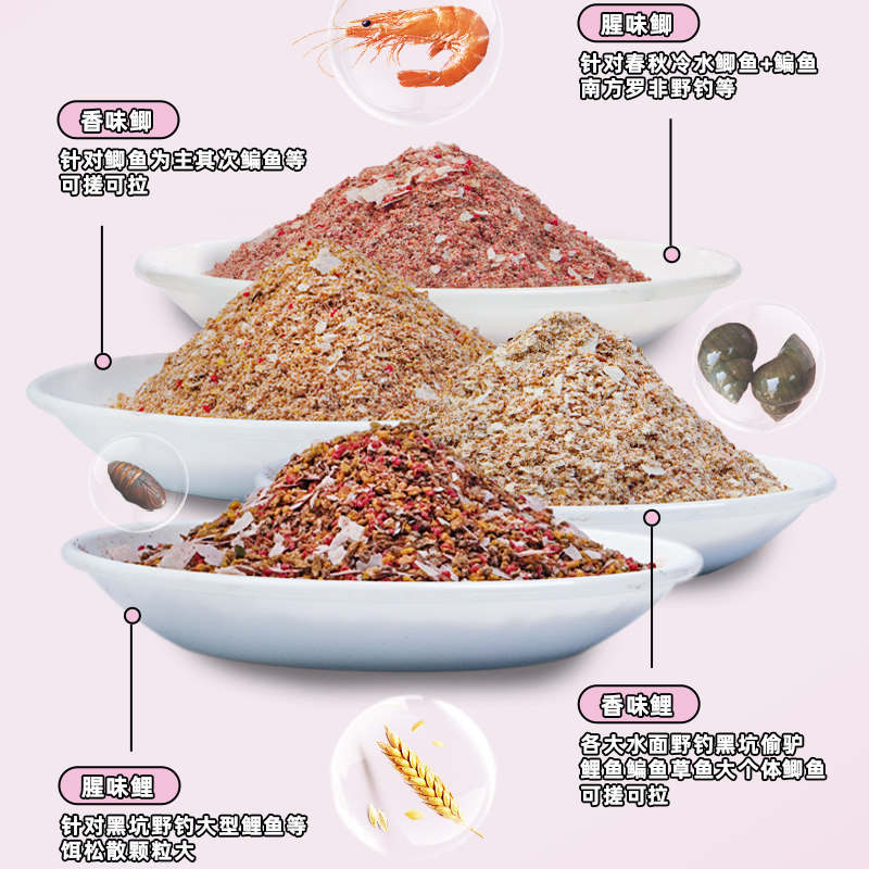 鱼在飞专钓大翘嘴米翘虾粉饼腥香水库溪流野钓打窝料钓鱼颗粒饵料