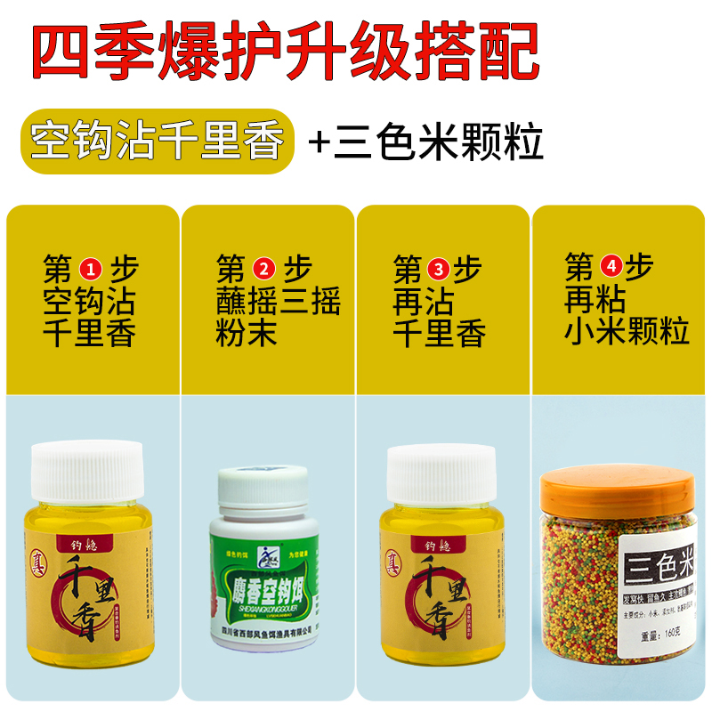 淘宝摇三摇空钩粘粉千里香野钓饵料钓鱼沾粉粘饵鲫鱼滑鱼克星套装