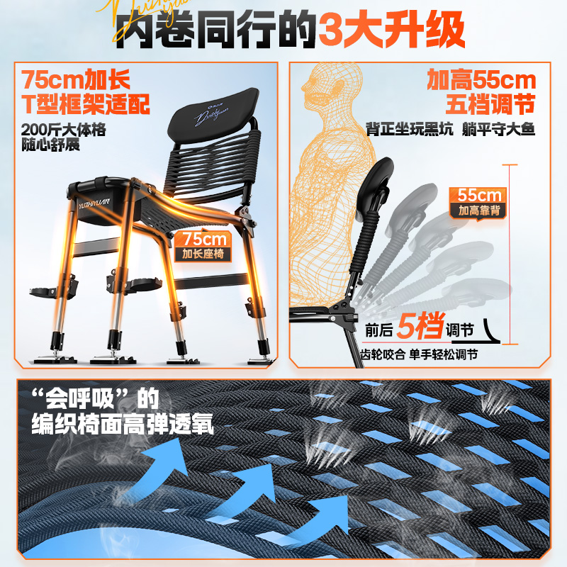 淘全地形多功能钓鱼座椅可折叠便携台钓无极升降超轻骑士椅子