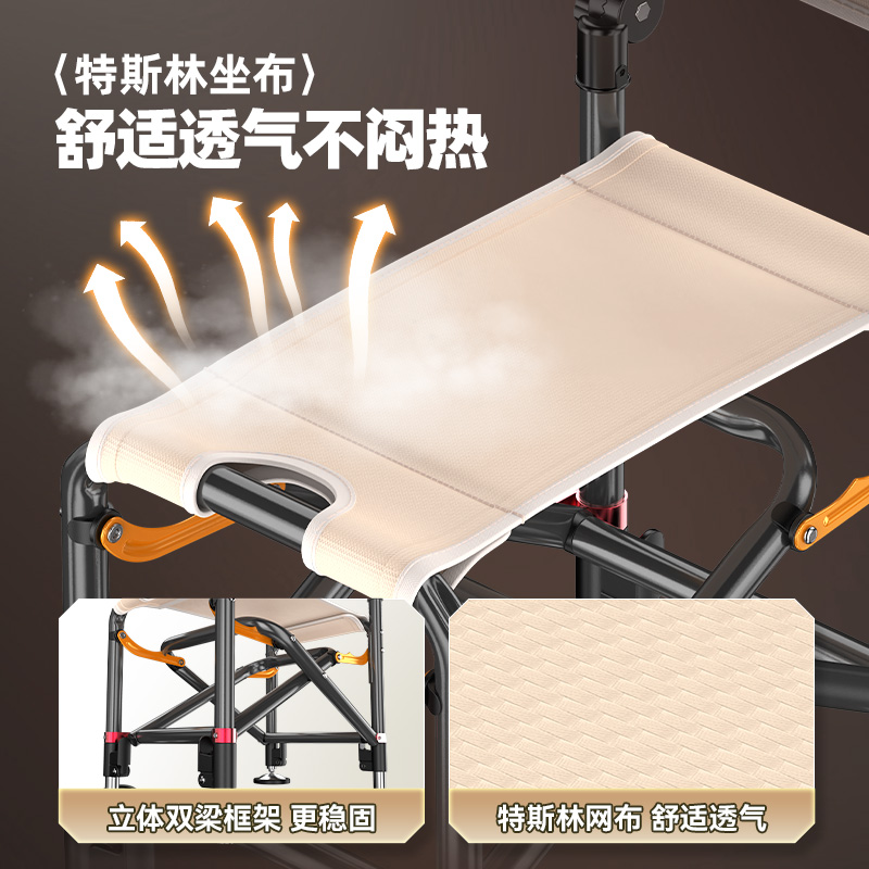 户外遮阳棚折叠椅加高靠背月亮椅带伞防晒钓鱼椅露营野餐沙滩椅凳
