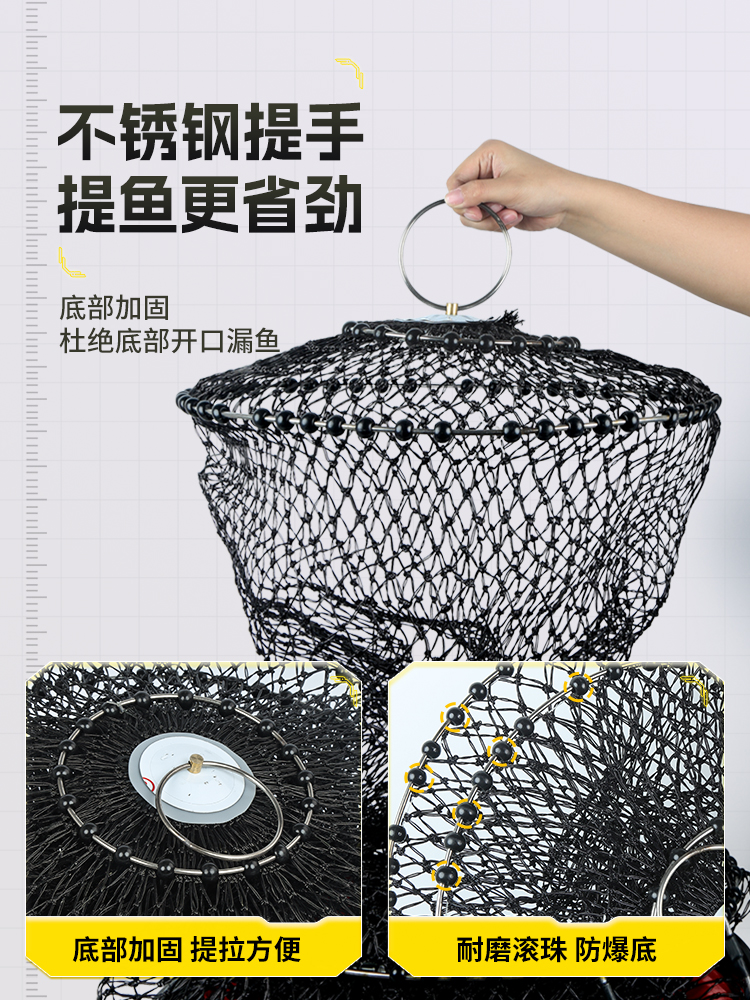 新款黑坑专用鱼护网钢圈加厚速干防挂编织大力马渔护大物装鱼网兜