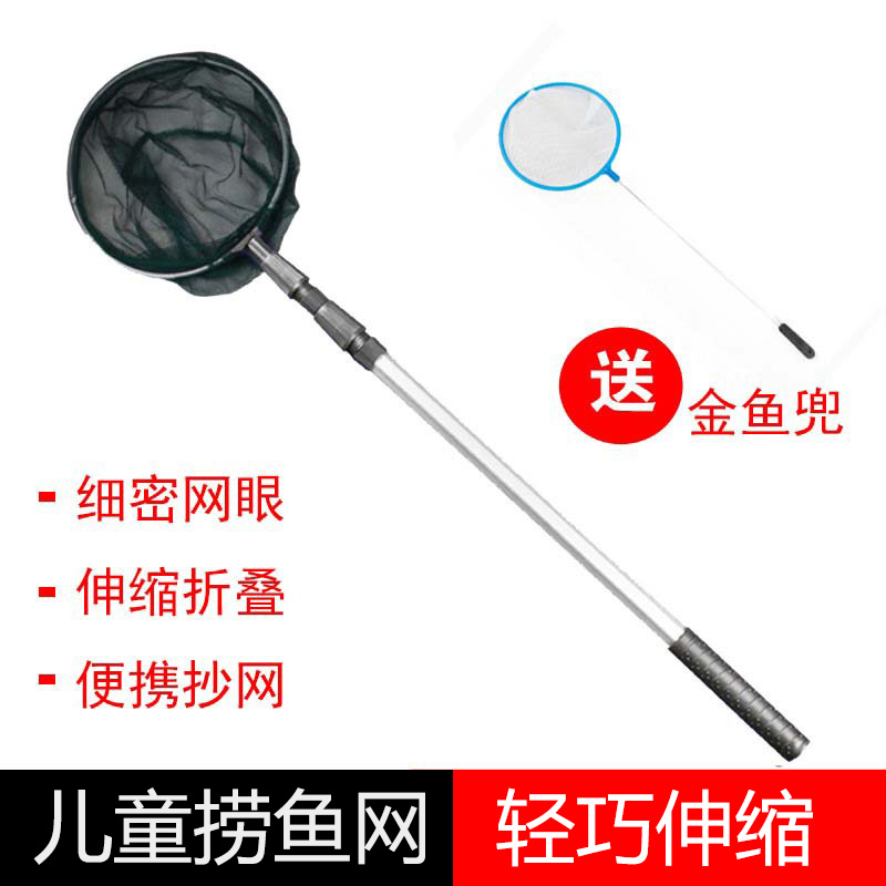 天儿童捞渔网抄鱼网捕虫捉蜻蜓蝴蝶网兜捞小鱼结实碳素可伸缩杆捕鱼