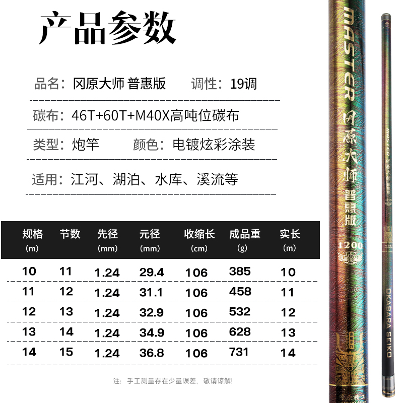 天猫冈原精工24新款大师超硬19调11米传统钓鱼竿13米手竿打窝杆鲫鱼