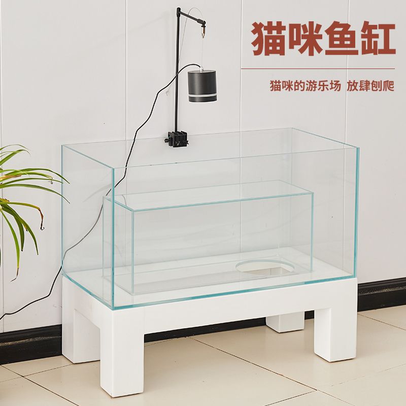 淘宝定制猫咪观赏鱼缸隧道可钻观景超白玻璃一体猫缸沉浸式海景猫窝缸
