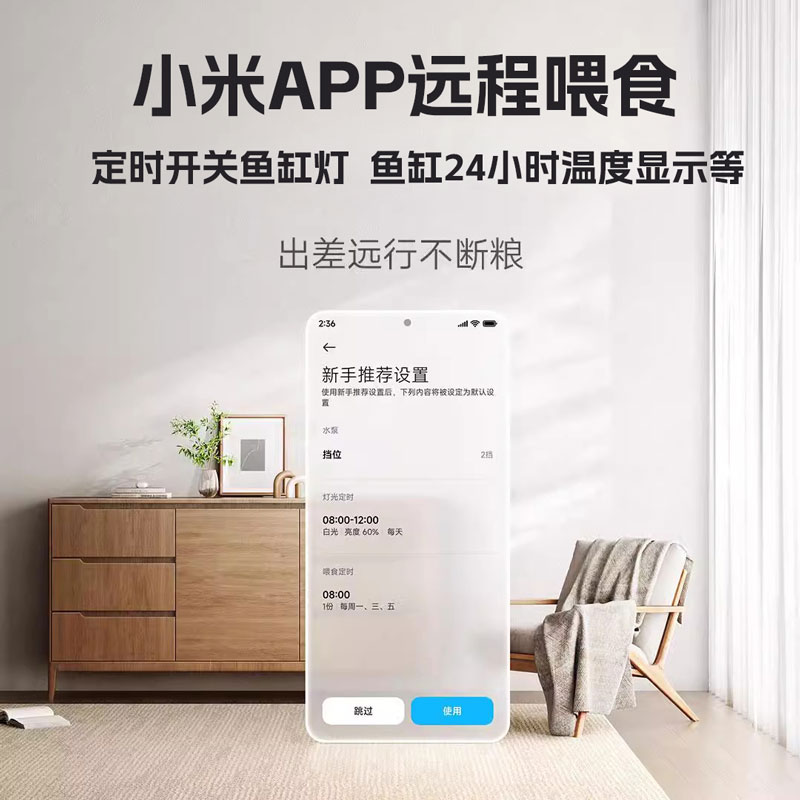 小米智能鱼缸二代生态是一款新型桌面小型观赏鱼缸,专为客厅设计,以简洁、时尚和智能化著称。这款鱼缸采用了先进的自循环系统,确保水质清洁透明,同时拥有高度自动化的管理功能,轻松打造优美的生态环境。其紧凑的设计使其适合任何家庭装饰风格,为客厅增添独特的魅力。此外,它还融入了智能技术,可连接手机APP远程控制,轻松实现智能管理。小米智能鱼缸二代生态是观赏鱼爱好者的理想选择,无论是养鱼新手还是专业人士都能轻松驾驭。
