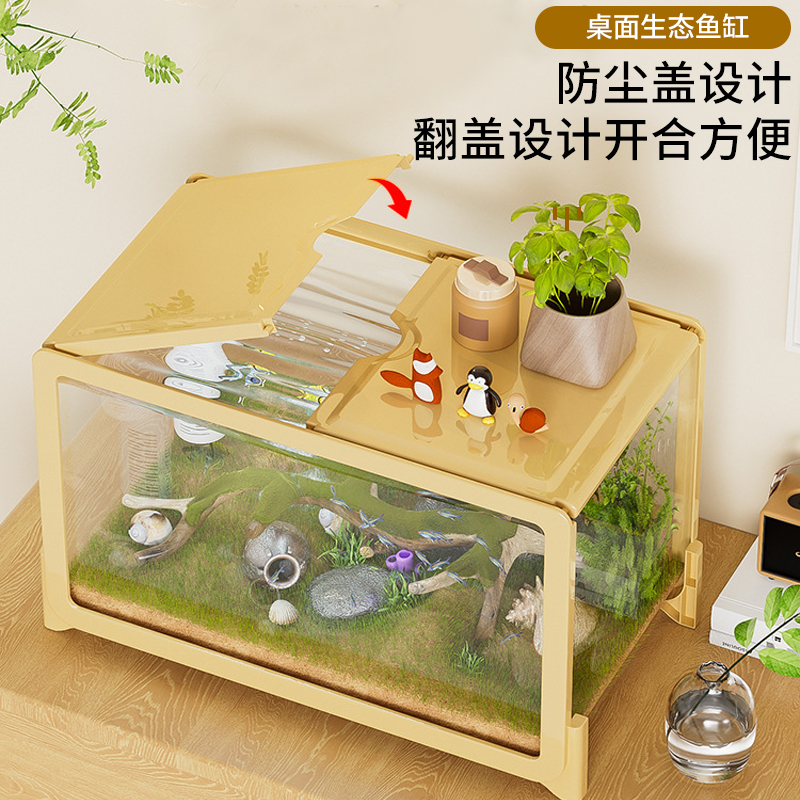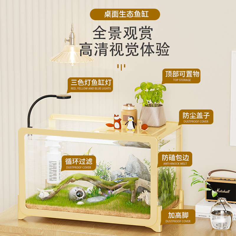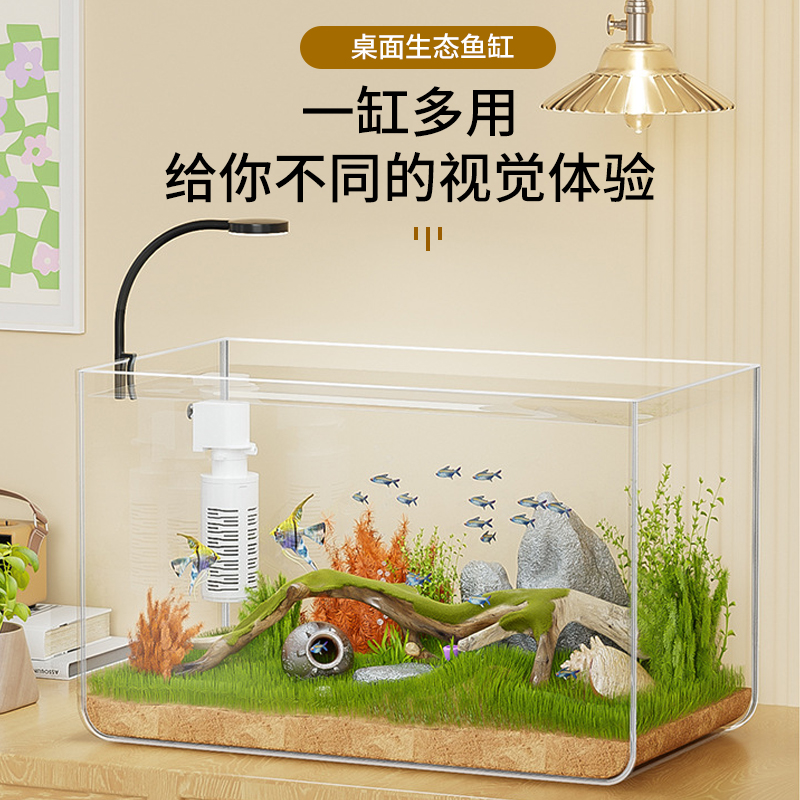 天猫鱼缸过滤制氧一体机小型客厅生态造景缸亚克力透明桌面观赏水族箱