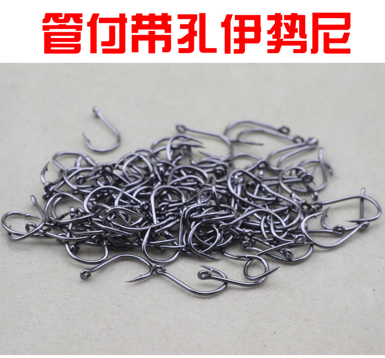 天猫管付伊势尼有倒刺带环带孔带圈鱼钩圈柄钓鱼钩散装鱼钩