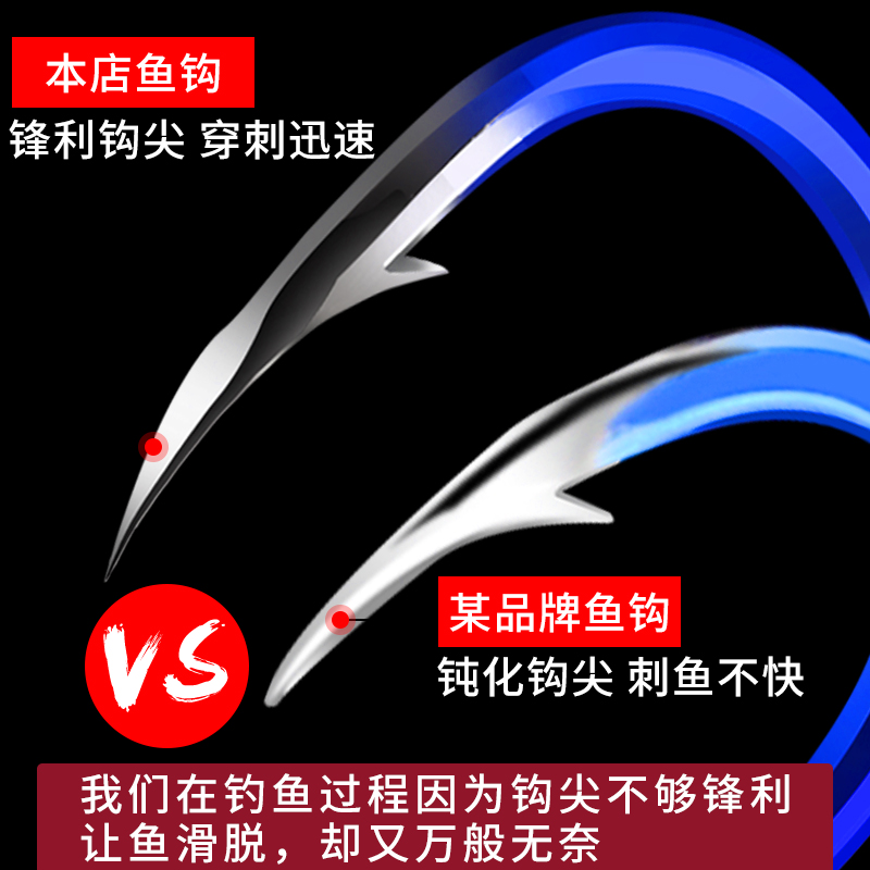 淘鬼牙蓝色新关东鱼钩无倒刺长柄黑坑混养钓鱼钩台钓鲫鱼鲤鱼罗非钩