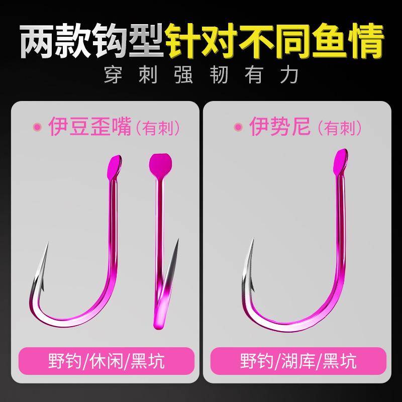 淘散装黑金双槽鱼钩钨钢钩伊势尼有倒刺血槽钩尖无刺新关东大物钓鱼